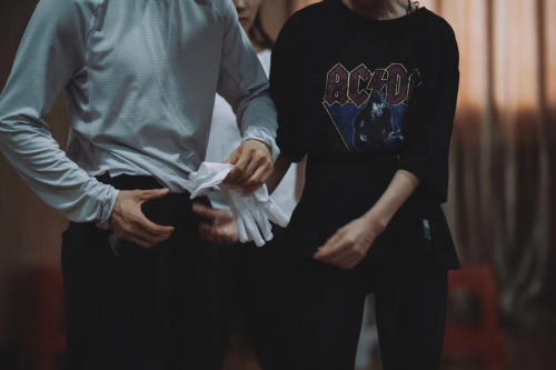 众所周知,三拓旗剧团最鲜明的标签是“形体剧”,这与悬疑剧的适配度极高。导演赵淼在《回廊亭杀人事件》中采用依然大量肢体表现来推动剧情、展现剧中人的潜台词和内心独白。用静默强化内心独白,这样的手法显然最能贴合一部密室杀人和本格迷局的主题。
